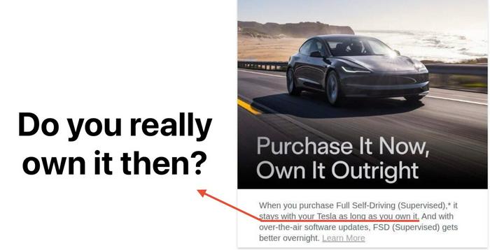 But in the email, Tesla appears to sneak in a policy change: FSD now only “stays with your Tesla as long as you own it.” It also has contradicting information on its support page.