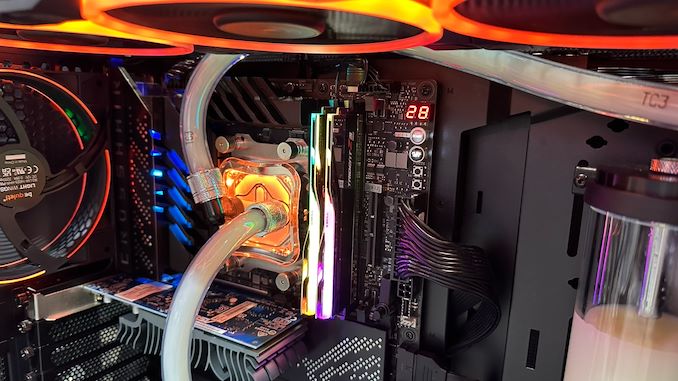 Traditionally, memory module makers like G.Skill use Intel processors to demonstrate their highest-performing kits. But with the DDR5-10600 kit, the company uses AMD's Ryzen 5 8500G processor, which is a monolithic Zen 4-based APU with integrated graphics that's normally sold for budget systems. The motherboard is a high-end Asus ROG Crosshair X670E Gene and the APU is cooled down using a custom liquid cooling system The Asus ROG Crosshair X670E Gene motherboard has only two memory slots, which greatly helps to enable high data transfer rates, so it is a very good fit for the DDR5-10600 dual-channel kit.