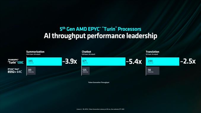 Hardware configurations aside, AMD also showcased a couple of benchmarks, pitting the new EPYC chips against Intel’s Xeons. As you’d expect in a keynote teaser, AMD was winning handily. Though it is interesting to note that the chips benchmarked were all 128 core Turins – which means those benchmarks may have been on chips using the full-fat cores.
