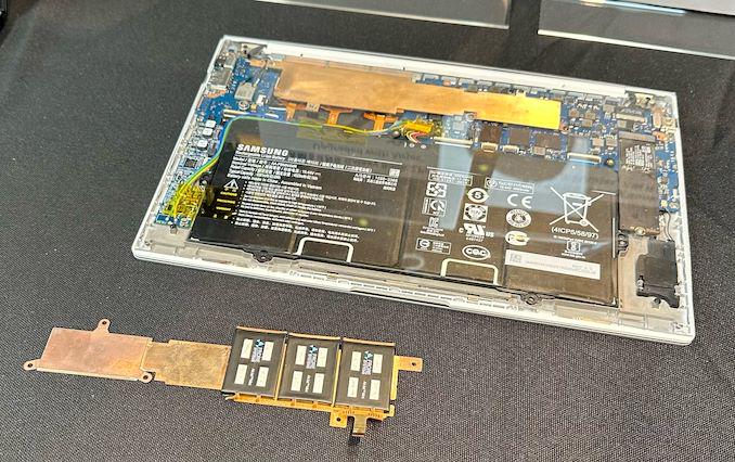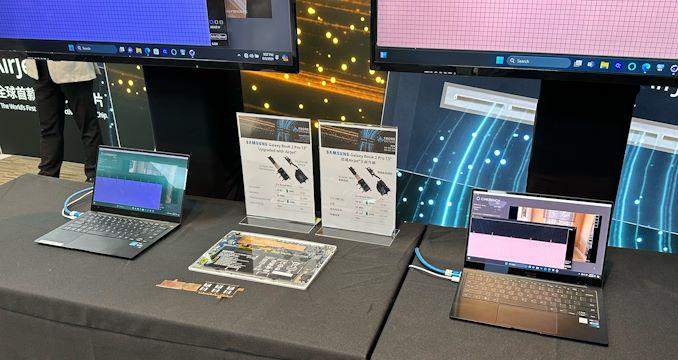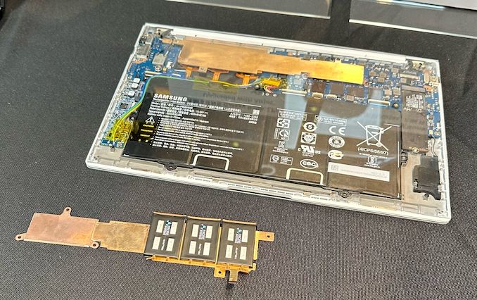 For the show, Frore has a number of demonstrations running in a fairly large showroom. The company is looking to address a wide range of products, from tablets to notebooks to small PCs, as well as embedded tablets. But there were two showcases in particular that caught my immediate attention: a Samsung Galaxy Book with and without Frore's AirJet, and an 8 TB Sabrent SSD in an external enclosure.