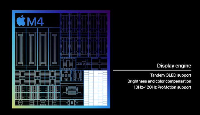 What is new to the M4 on the display side of matters, however, is a new display engine. The block responsible for compositing images and driving the attached displays on a device, Apple never gives this block a particularly large amount of attention, but when they do make updates to it, it normally comes with some immediate feature improvements.