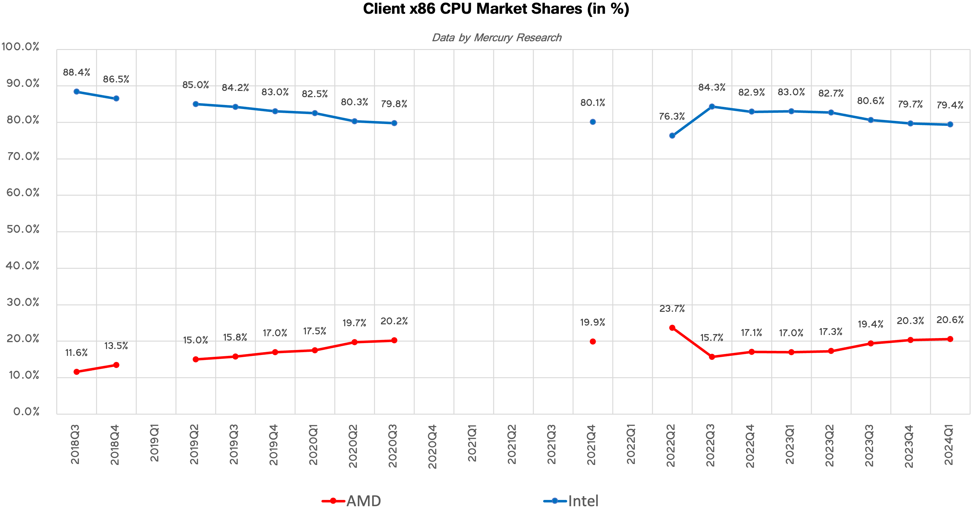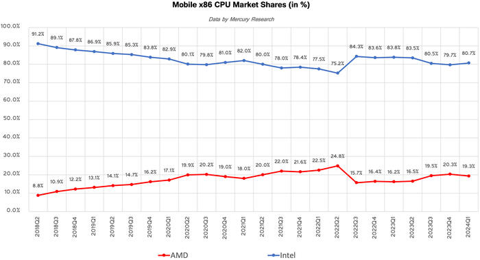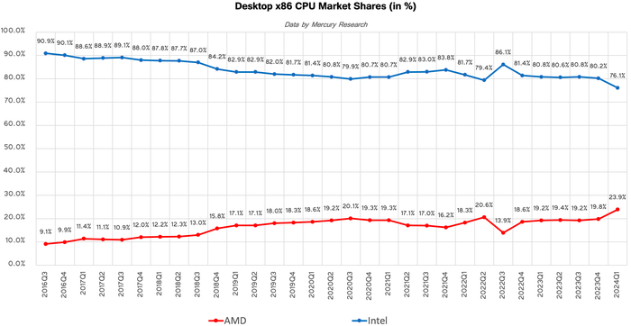 "Mercury noted in their first quarter report that AMD gained significant server and client revenue share driven by growing demand for 4th Gen EPYC and Ryzen 8000 series processors," a statement by AMD reads.