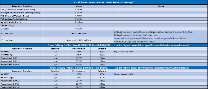 Not only this, but the Intel Default settings offer a combination of thermal specifications and power capabilities, including voltage and frequency curve settings that apply to the capability of the motherboard used, and the power delivery equipped on the motherboard. At least for the most part, Intel is recommending users with 14th and 13th-Gen Core series K, KF, and KS SKUs that they do not recommend users opt in using the Baseline profiles offered by motherboard vendors.