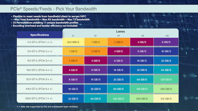 Overall, the engineers behind the standard have their work cut out for them, given that PCIe 7.0 requires doubling the bus frequency at the physical layer, a major development that PCIe 6.0 sidestepped with PAM4 signaling. Nothing comes for free in regards to improving data signaling, and with PCIe 7.0, the PCI-SIG is arguably back to hard-mode development by needing to improve the physical layer once more – this time to enable it to run at around 30GHz. Though how much of this heavy lifting will be accomplished through smart signaling (and retimers) and how much will be accomplished through sheer materials improvements, such as thicker printed circuit boards (PCBs) and low-loss materials, remains to be seen.