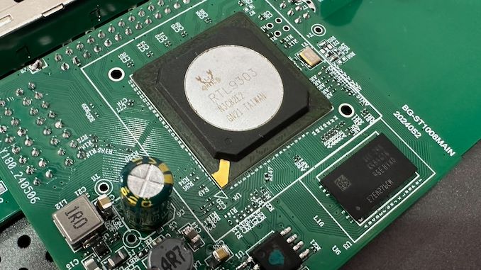 Realtek’s quad-port 5GbE switch platform consists of five key chips: one RTL9303 switch system-on-chip, and four RTL8251B 5GbE physical interfaces (PHYs). The chips are accompanied by various other components, such as power management ICs, but in general it relies solely on in-house developed components, which is why it can be made so cheap.