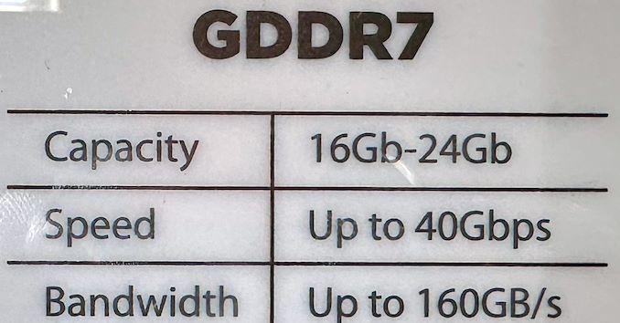 As far as SK hynix's floor booth at Computex 2024 is concerned, the company had GDDR7 chips on display along with a table essentially summarizing the company's roadmap. For now, SK hynix is planning on both 16Gbit and 24Gbit chips, with data transfer rates of up to 40 GT/s. Though when SK hynix intends to launch their higher-end configurations remains to be seen. Both of the company's rivals are starting out with 16Gbit chips running at 32 GT/sec, so being the first to get a faster/larger chip out would be a feather in SK hynix's cap.